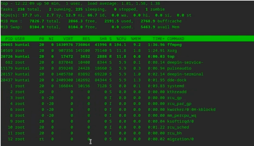 2、查看进程:在终端中输入top命令并回车,这将显示当前系统中所有进程的实时状态,包括CPU和内存占用情况。
