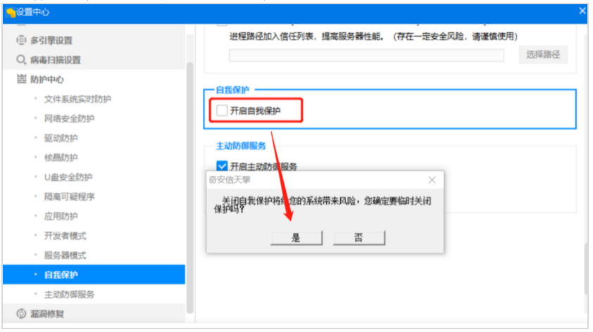 步骤 1:关闭天擎的自我保护(Kylin 图形界面)