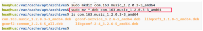 为方便传输,建议新建与主软件包同名的目录,用sudo mkdir 目录名创建后,通过sudo mv *.deb 目录名将所有 deb 格式文件移入该目录。