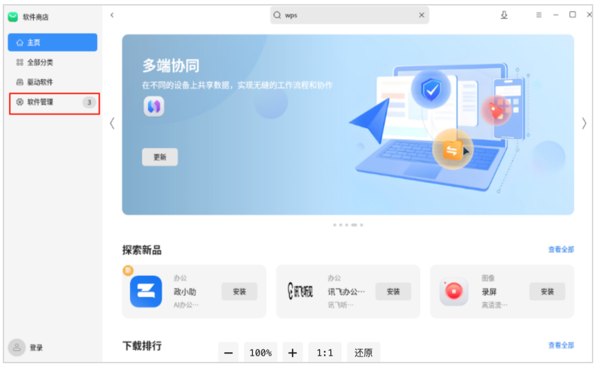 打开开始菜单,进入系统自带的软件商店,找到 “已安装应用” 列表,所有通过商店安装的软件一目了然。选中需要卸载的程序,点击卸载按钮并输入密码,系统会自动完成清理,操作简单、安全稳定,日常卸载办公软件、浏览器等常规应用首选此法。