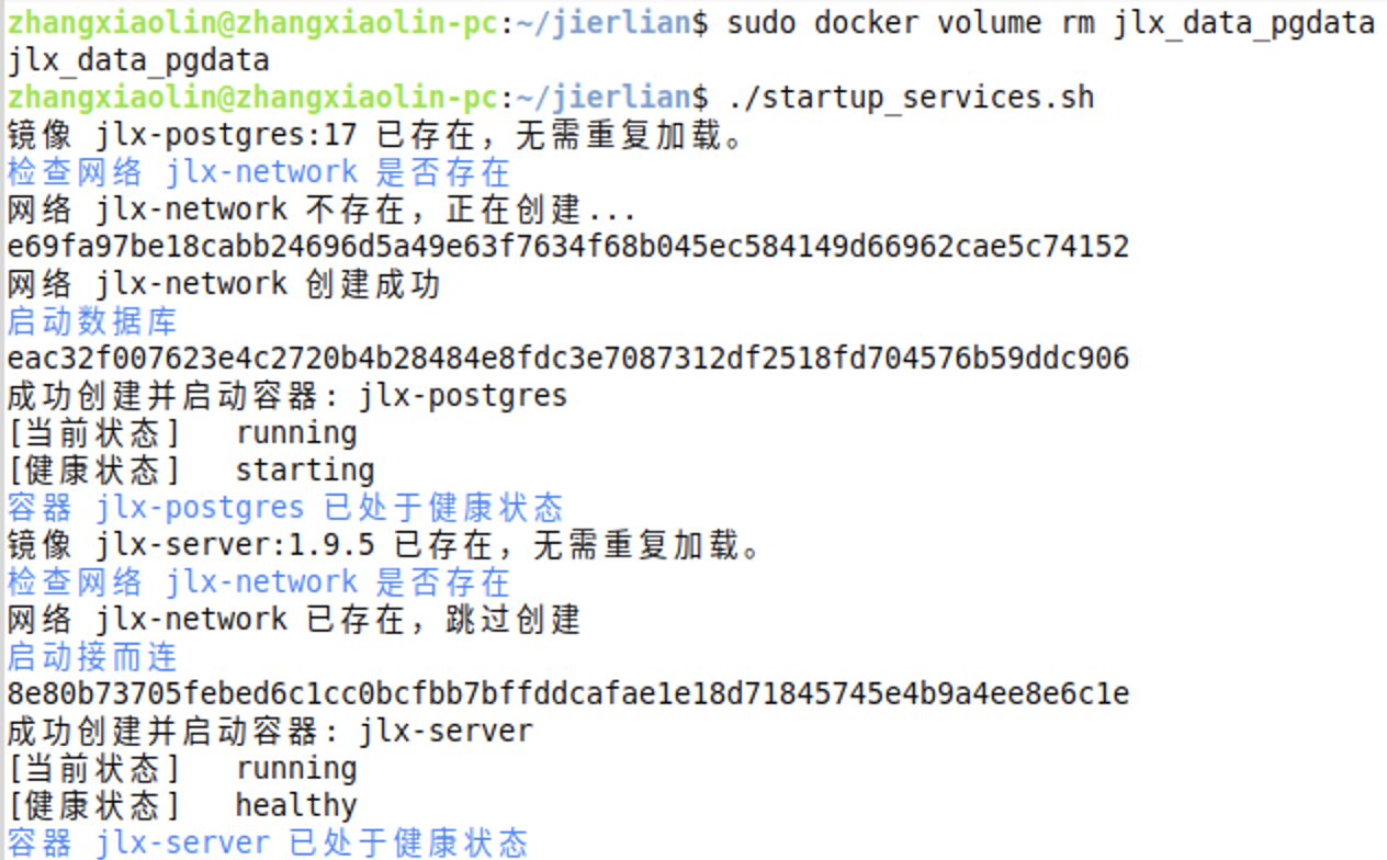 3. 输入:sudo docker volume rm jlx_data_pgdata