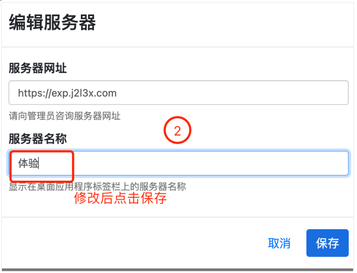 修改完成后,您会在桌面应用程序的标签栏上看到新的服务器名称,这有助于您快速识别和管理不同的工作空间。