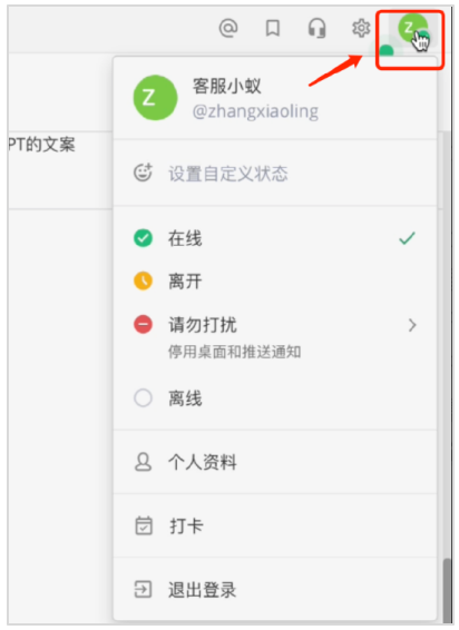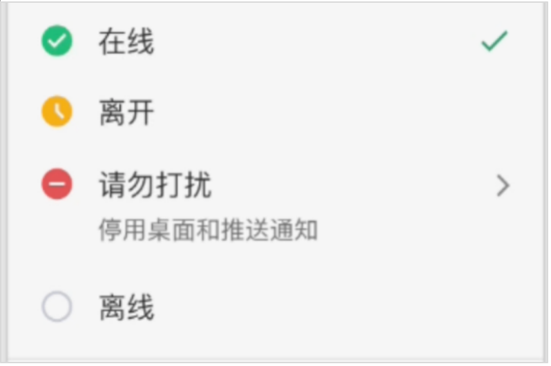 在线:选择“在线”状态表示你当前处于活跃状态,可以接收和回复消息。这是默认状态,适用于大多数工作场景。
