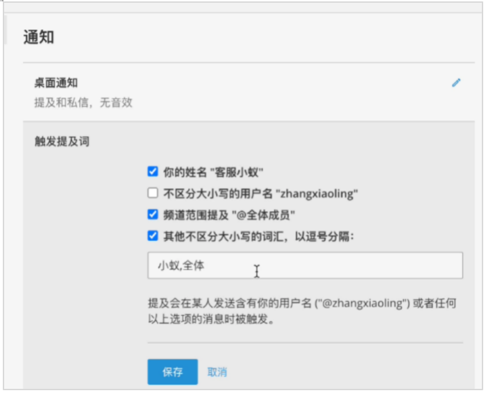 为了确保你不会错过任何重要信息,你可以配置通知设置。在通知设置中,你可以选择接收桌面通知,并设置触发提及词,如你的姓名或用户名。这样,当有人提及你或全体成员时,你将收到通知。