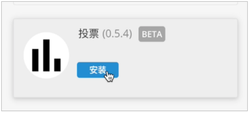 在应用市场中,找到“投票”插件。点击“安装”按钮来添加此插件到你的接而连(J2L3x)中。