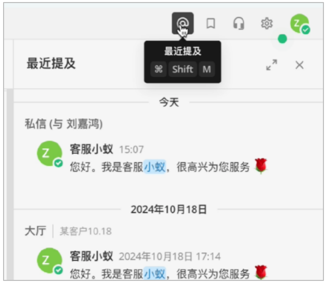 登录后,在页面的右上角,你会看到一个图标,点击这个图标,选择“最近提及”(如图2所示)。这个功能会显示所有提及到你的相关内容,无论是在公共频道还是私信中。