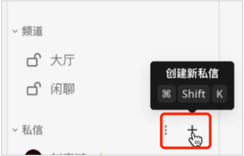 在“私信”右侧选择“+”按钮,如图2所示。这将打开一个弹出框,您可以在其中添加小组成员。